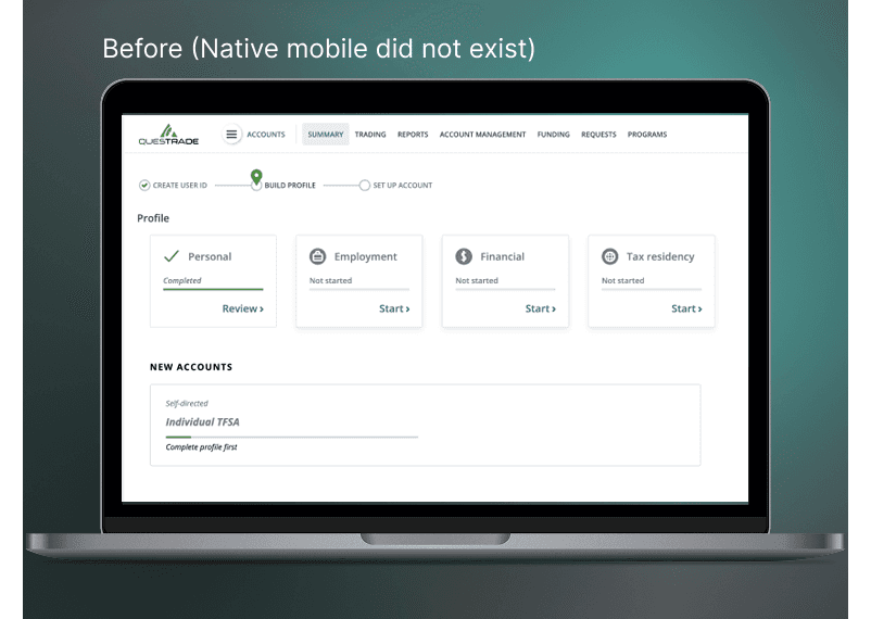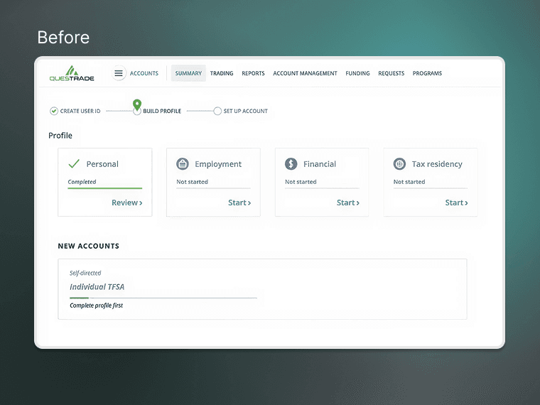 Questrade built its business on being a brokerage only and wanted to expand. Questrade needed a new portal to support this expanding portfolio which included mortgages, investing, trading, and insurance.