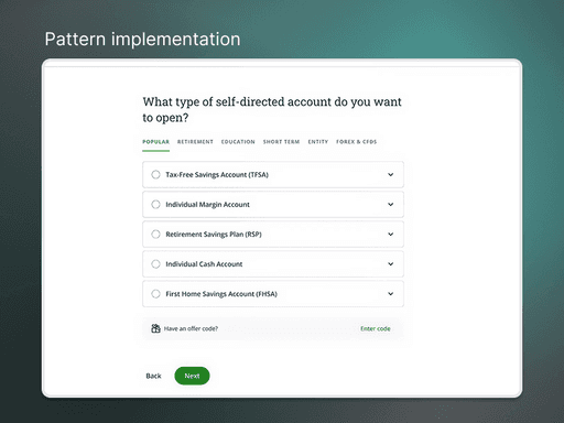 Platform signup & onboarding for investing across 10+ account types. (This case study)